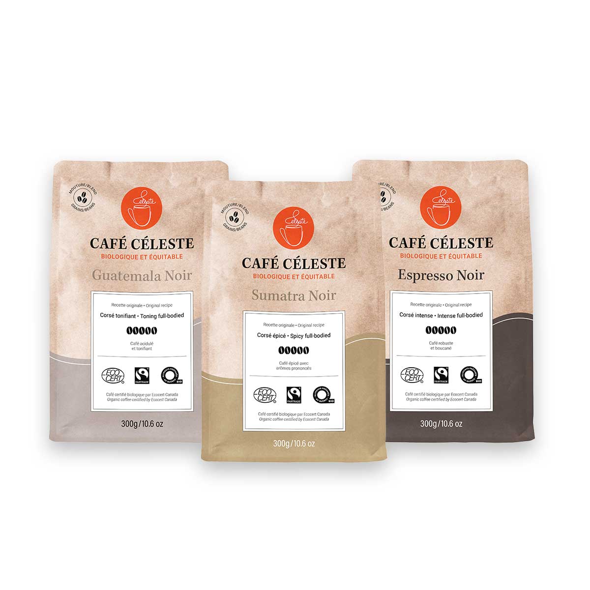 Café Céleste vous offre un café d'exception fait à partir de grains de café biologiques et Fairtrade. Notre mission est de contribuer au respect des producteurs dans les échanges commerciaux. Nous croyons que l’économie, tant à l’échelle locale que mondiale, doit être édifiée sur des principes de justice sociale, de respect environnemental, d’équité et d'authencitité.